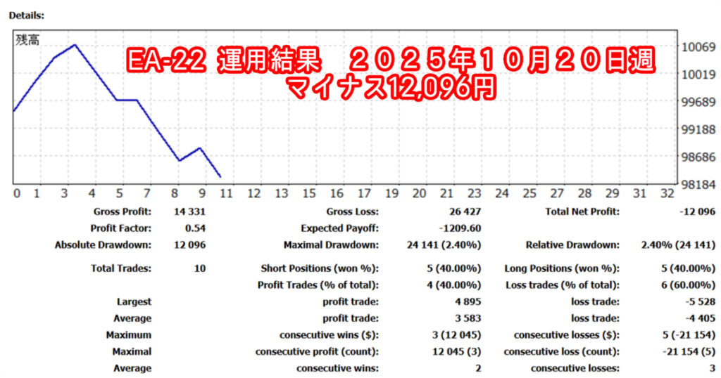 【FX自動売買運用結果】2025年10月20日週 -12,096円