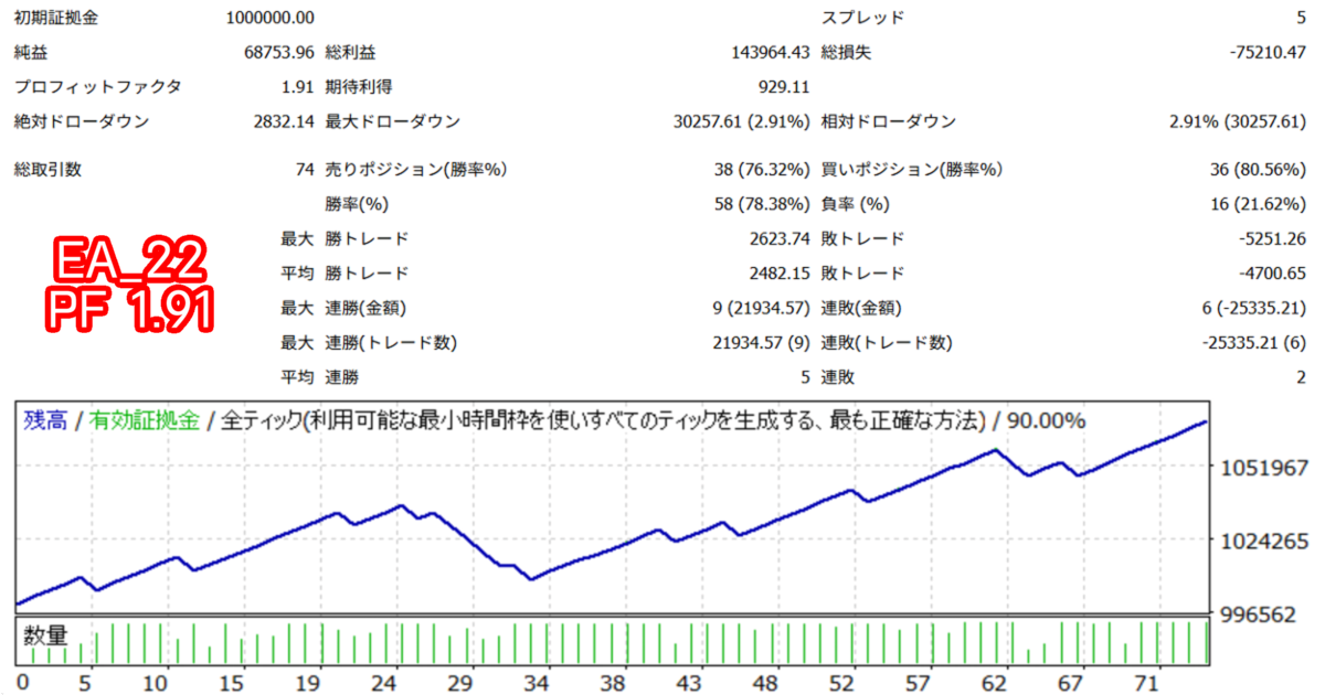 【FX自動売買バックテスト結果】EA_22 ドル円