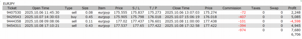 【FX自動売買運用結果】2025年10月6日週 ユーロ円#4 プラス6,706円