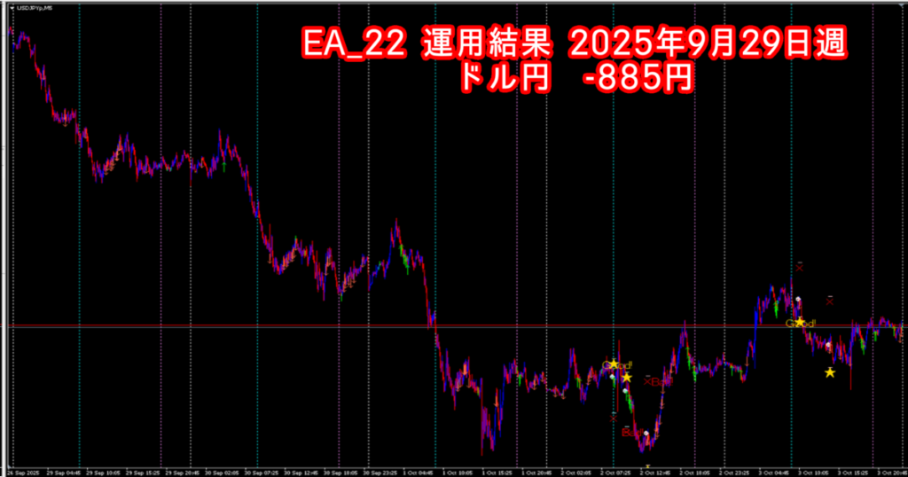 【FX自動売買運用結果】2025年9月29日週 ドル円#1 マイナス885円