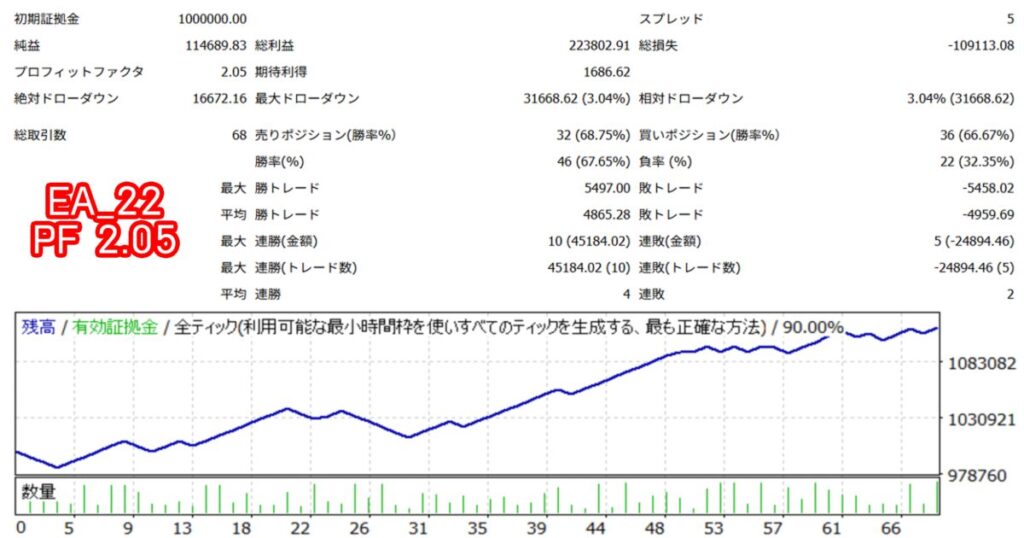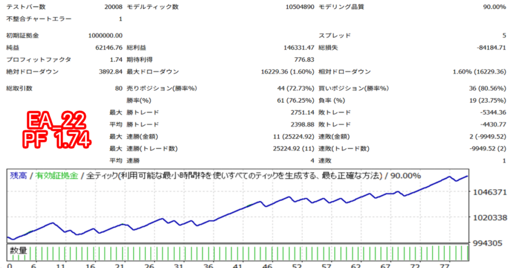 【FX自動売買バックテスト結果】EA_22 ドル円